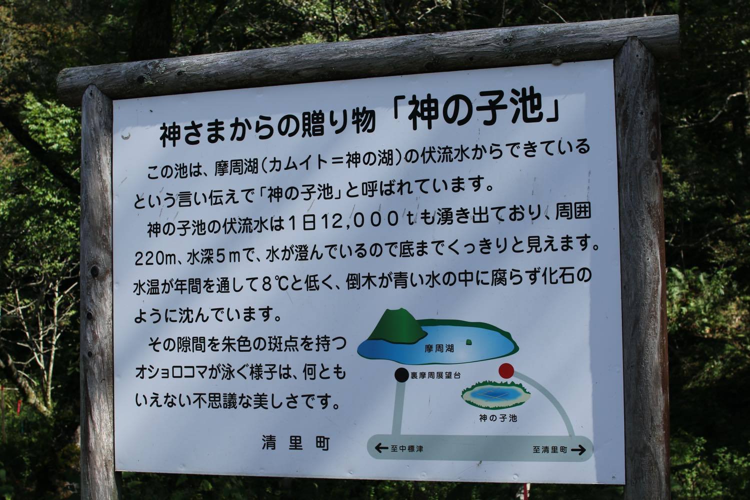 摩周湖第1展望台から野上峠を通り約25kmほど離れた「川向」「の桜の滝に向かいました。ここは桜鱒が滝登りをするところが見られる山奥。残念ながら時期は遅く10分ほどで一匹の桜鱒の滝登りが見れましたが、「熊出没注意」の看板に恐れをなし早々に退散しました。