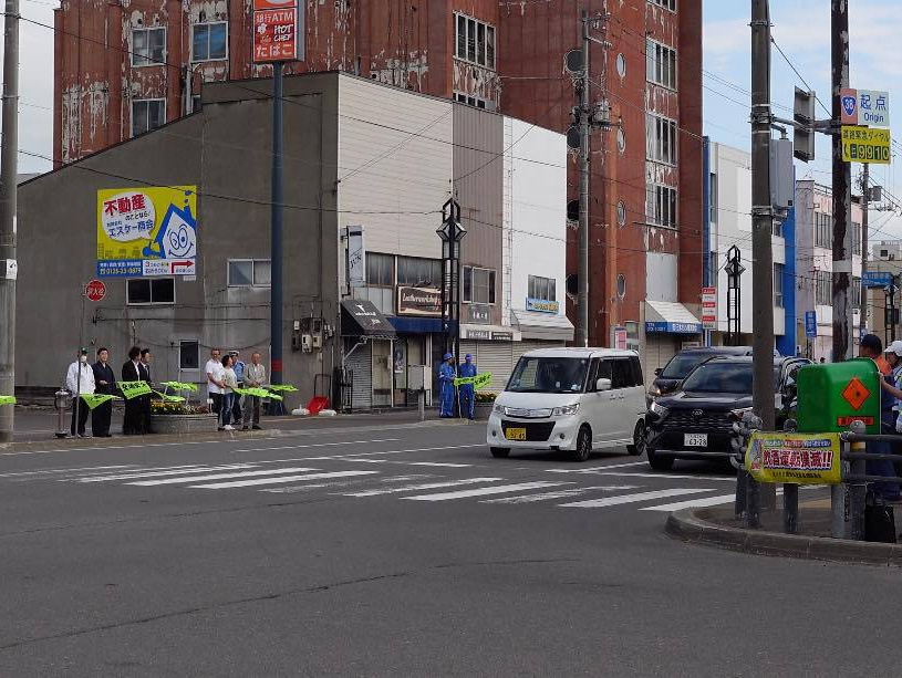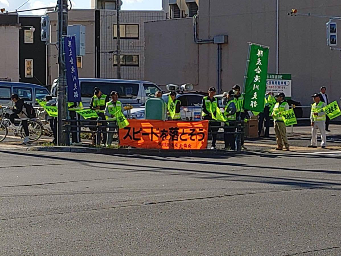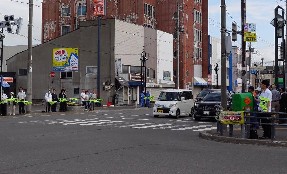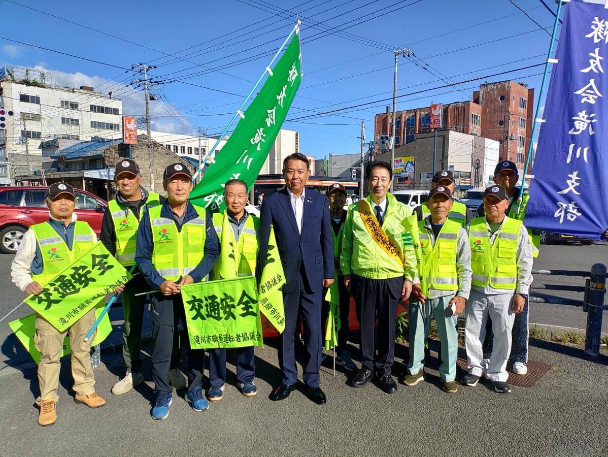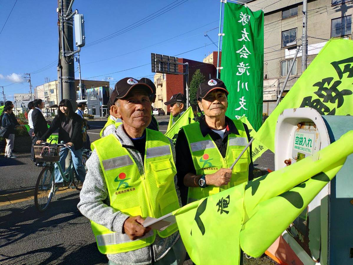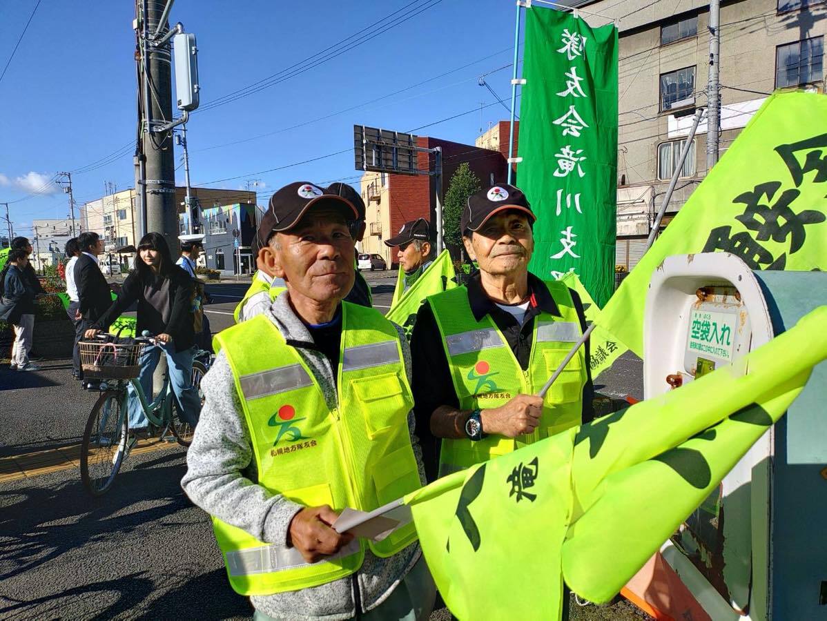 令和7年7年7月19日、秋の交通安全運動が始まりました。期間は9月21日〜9月30日までの10日間です。隊友会滝川支部は、19日早朝の出勤・通学時間帯に市内を通る国道12号線沿いに立ち並らび「飲酒運転・スポーどの出し過ぎ」など事故防止の声がけを行なった。